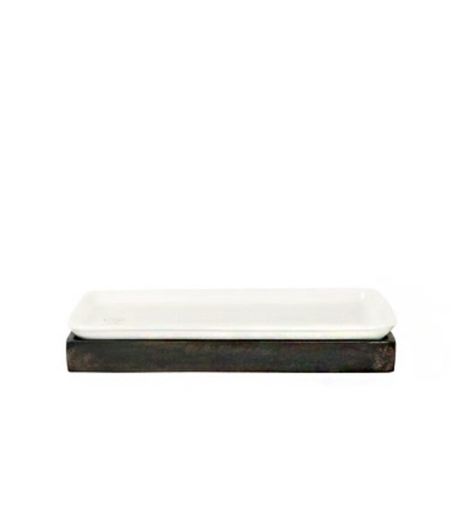 Branded, sealed small rectangular platter in iron base for serving, guest towels, pens . . . Dimensions: 11" x 6" x 1".