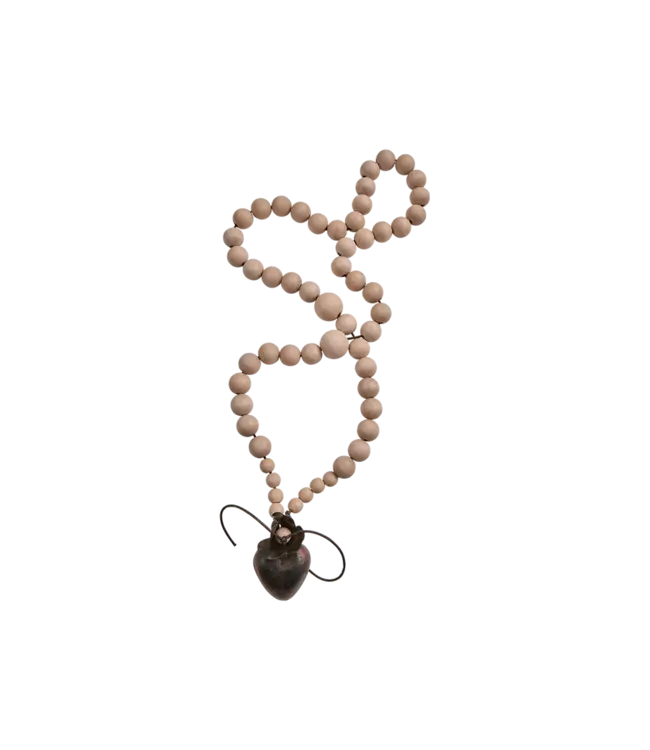 Blush colored wood blessing beads with natural iron flower and heart